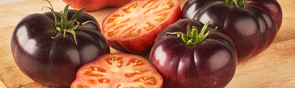 Cultivado en nuestros campos del Maresme, el tomate morado destaca por su color azulado, por ser muy sabroso y carnoso y tener múltiples propiedades antioxidantes y antiinflamatorias para el organismo.